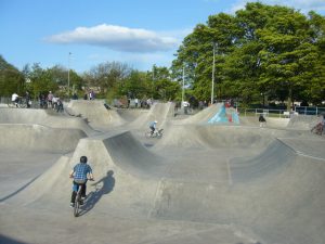 Skatepark de Saughton à Édimbourg, reconnu comme l’un des meilleurs d’Écosse. Bowl profond et street section de qualité.