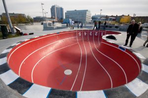 Complexe skate indoor et outdoor. Référence scandinave avec restaurant et shop.