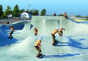 Skatepark moderne scandinave avec design épuré. Bowls et street de haute qualité.