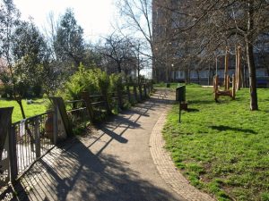Skatepark public dans un grand parc. Ambiance familiale danoise.